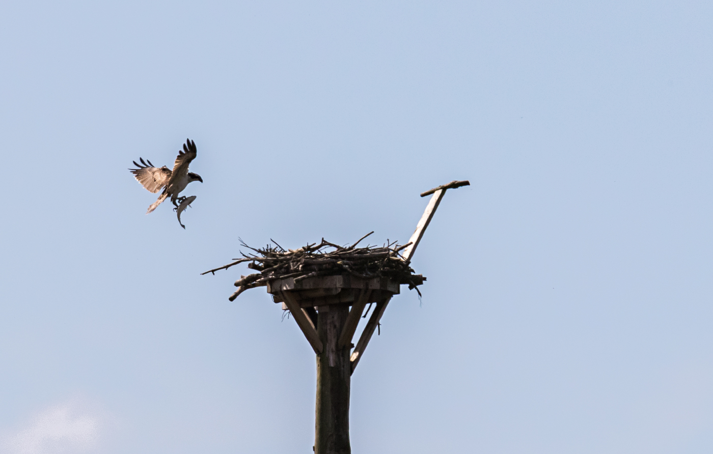 After a little while another Osprey carried a fish back to the dead trees across the Marsh, it struggled a little to keep his balance and eat the fish. I left shortly afterwards after a wonderful morning.