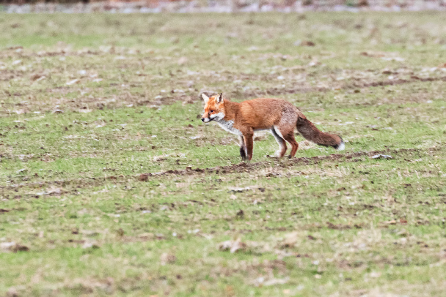 One morning I looked outside, it was still quite dark I spotted a Fox goung across the field at the back of our house. He snuffled around looking for food for a while so I was able to take a few pictures of him.