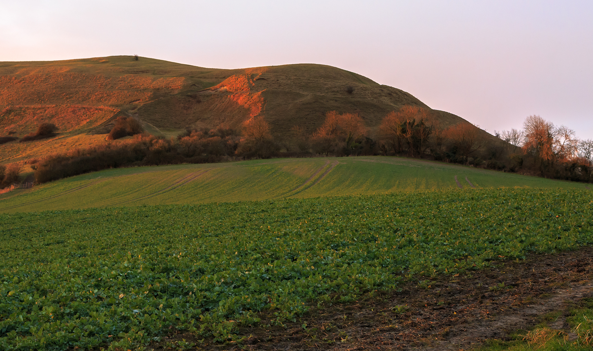 I am an avid weather watcher keeping an eye on the week ahead and the next day. Saturday 10th February was set for a cloudy start and rain moving in so I had no great expectations of seeing a good sunrise and taking pictures. But when I looked out I noticed a red sky developing over to the east which must have been about an hour before sunrise. I’m getting up little earlier each day as the light in the day is lengthening. I decide to head for the other side of Hambledon hill to try and catch the light. It is a good 30 minutes walk from home so Tilly and myself had to get a move on!