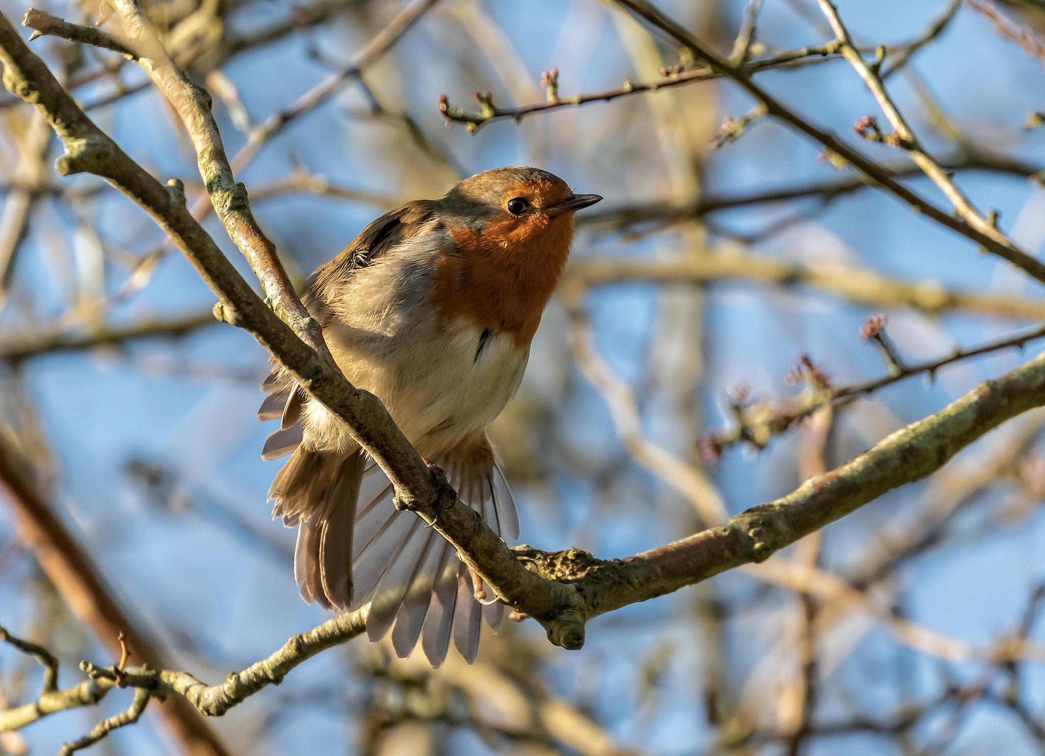 Of course I couldn’t resist a Robin stretching his wings in the early morning sunshine, if all else fails there is always a Robin about!