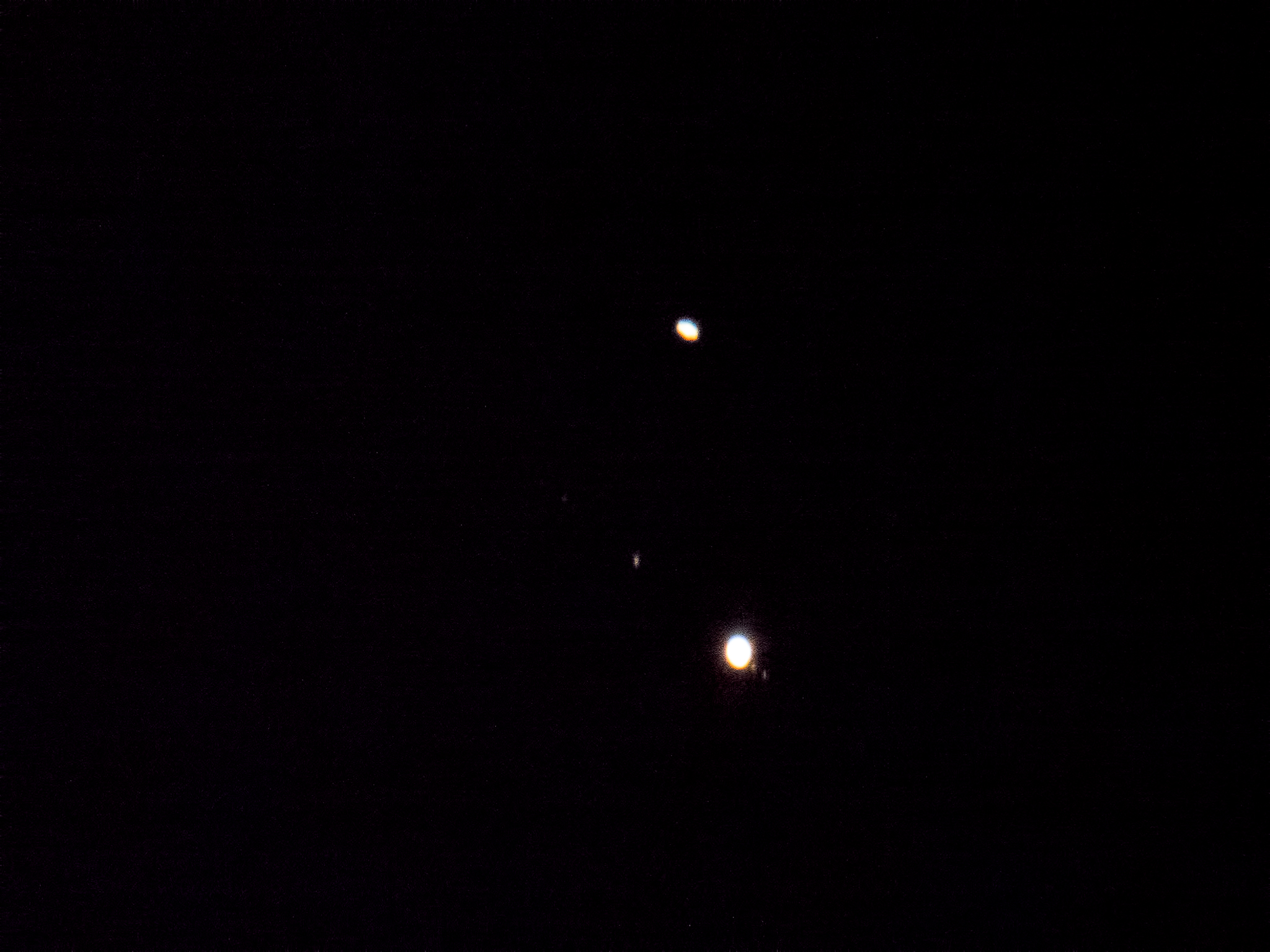 My attempt at capturing the near alignment of Saturn (top) and Jupiter and possibly three of Jupiter’s moons. It was difficult getting a fast enough shutter speed to stop the movement of the planets, ISO 25600 and my 400 lens with 2x converter and I’m still not practiced enough for night sky photography!